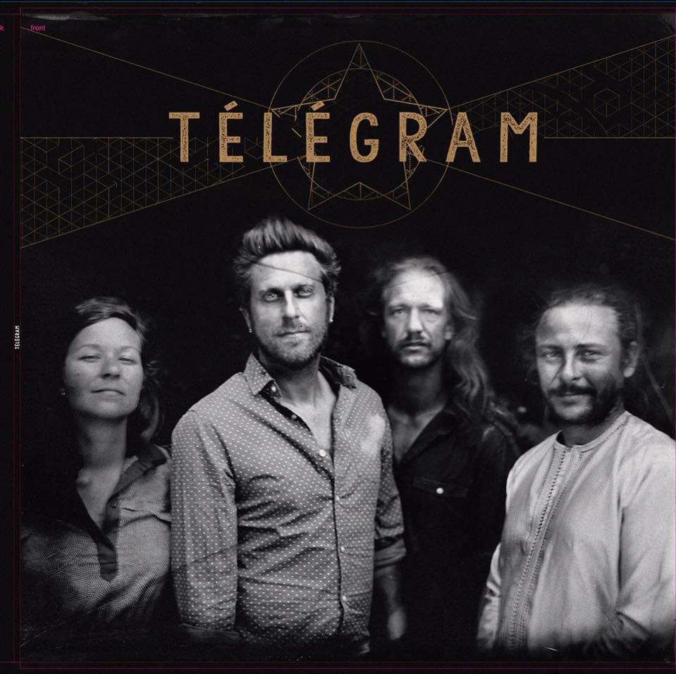 TÉLÉGRAM, c’est un groupe de musiciens, qui jouent de la guitare folk, du violon, de l’oud, de la Steel guitare, de la guitare électrique, de la contrebasse, du stomp, de la kora africaine avec le charismatique Laurent Kebous des « Hurlements d’Léo », Vincent Serrano, lui aussi « Hurlements d’Léo », Chloé Legrand de « La Cafetera Roja » et Julien Perrugini de « Damage Case ».