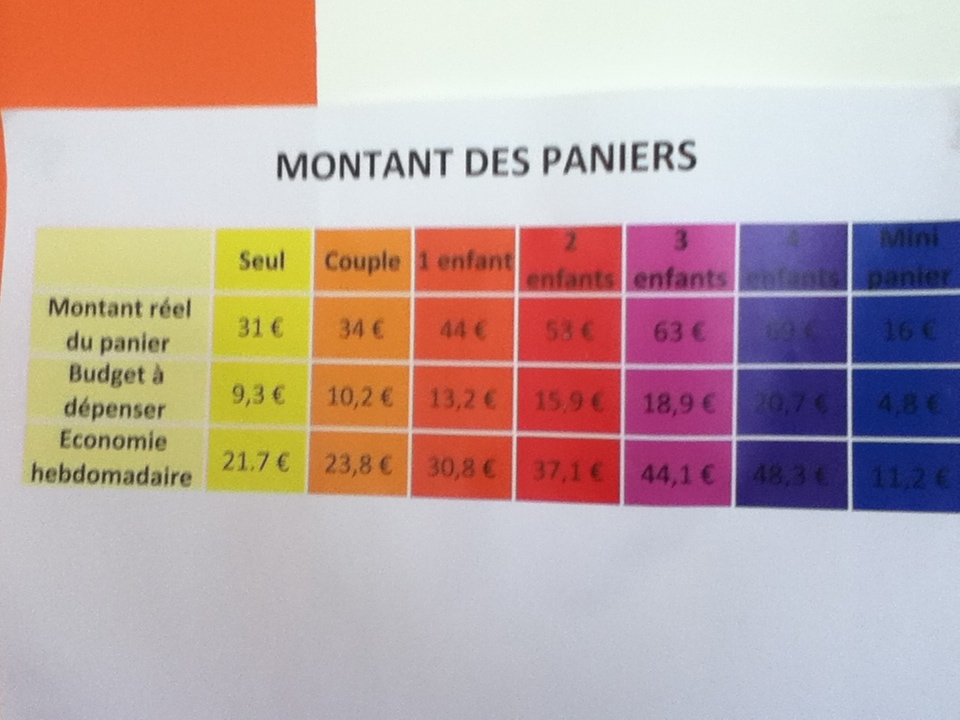 Ce sont les bénévoles qui servent les familles, car ils doivent inscrire sur une feuille ce qui est pris. Toujours avec cette même logique de veiller à ce que la dose quotidienne ne soit pas dépassée : « Comme on discute avec les gens, ils nous arrivent d’oublier de marquer un produit ». Alors, pour éviter trop de « laxisme », les « caissiers » ont cette même fiche qui va leur permettre d’effectuer une double vérification. Au sujet des denrées justement, elles proviennent du marché de Rungis ou des supermarchés tels que Picard et G20. Nous avons également du pain, gracieusement offert par une boulangerie voisine.